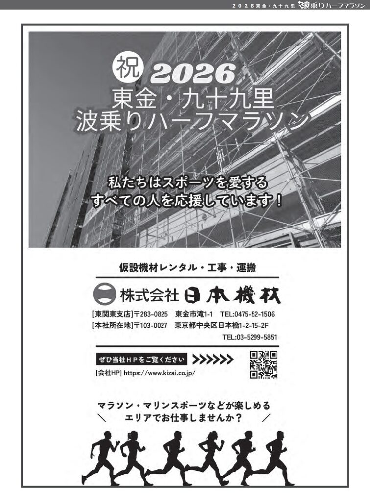 昨年に引き続き、2月22日(日)開催の東金・九十九里波乗りハーフマラソン協賛企業として当社広告が掲載されました。